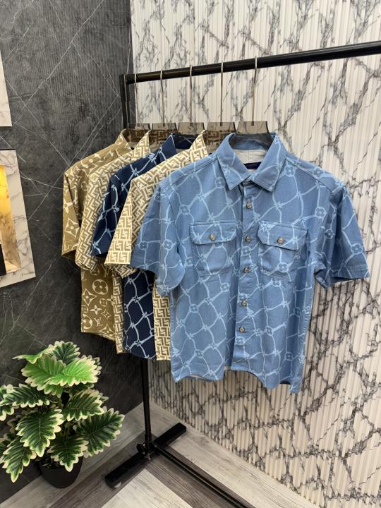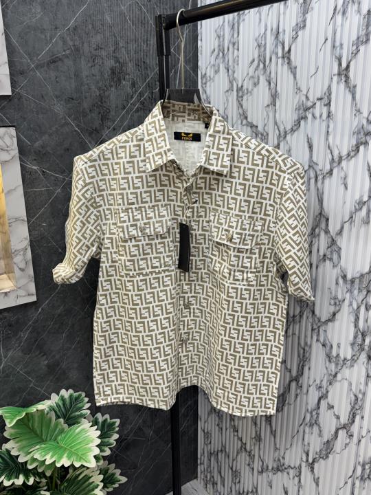 Sale.Fendi.100%.White.Imported.All.Over.Monogram.Printed.Denim.Fabric.Very.Premium.Drop.Shoulder.Half.Sleeves.Shirt.